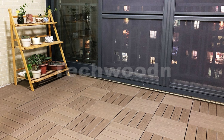 如今有更便捷的方式可以让你的阳台焕然一新。如果您喜欢天然木材的外观和感觉,WPC阳台小地板无疑是改造阳台地板最简单和快捷的方法。这些小地板采用12″x12″ (300x300mm) 的尺寸,背面有塑料网格状底座,水可以在下面自由排出。你可以将它直接铺设在旧的阳台瓷砖上,通过简单的卡扣固定,无需任何工具就可以完成。