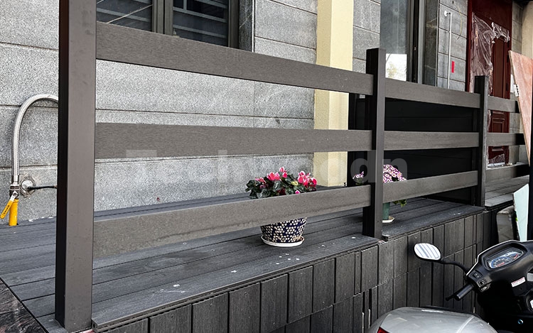 以上是我们应用在庭院木塑护栏项目上的图片。 我们的WPC护栏系统提供可定制的多种颜色和设计选项,适用于住宅或商业环境。